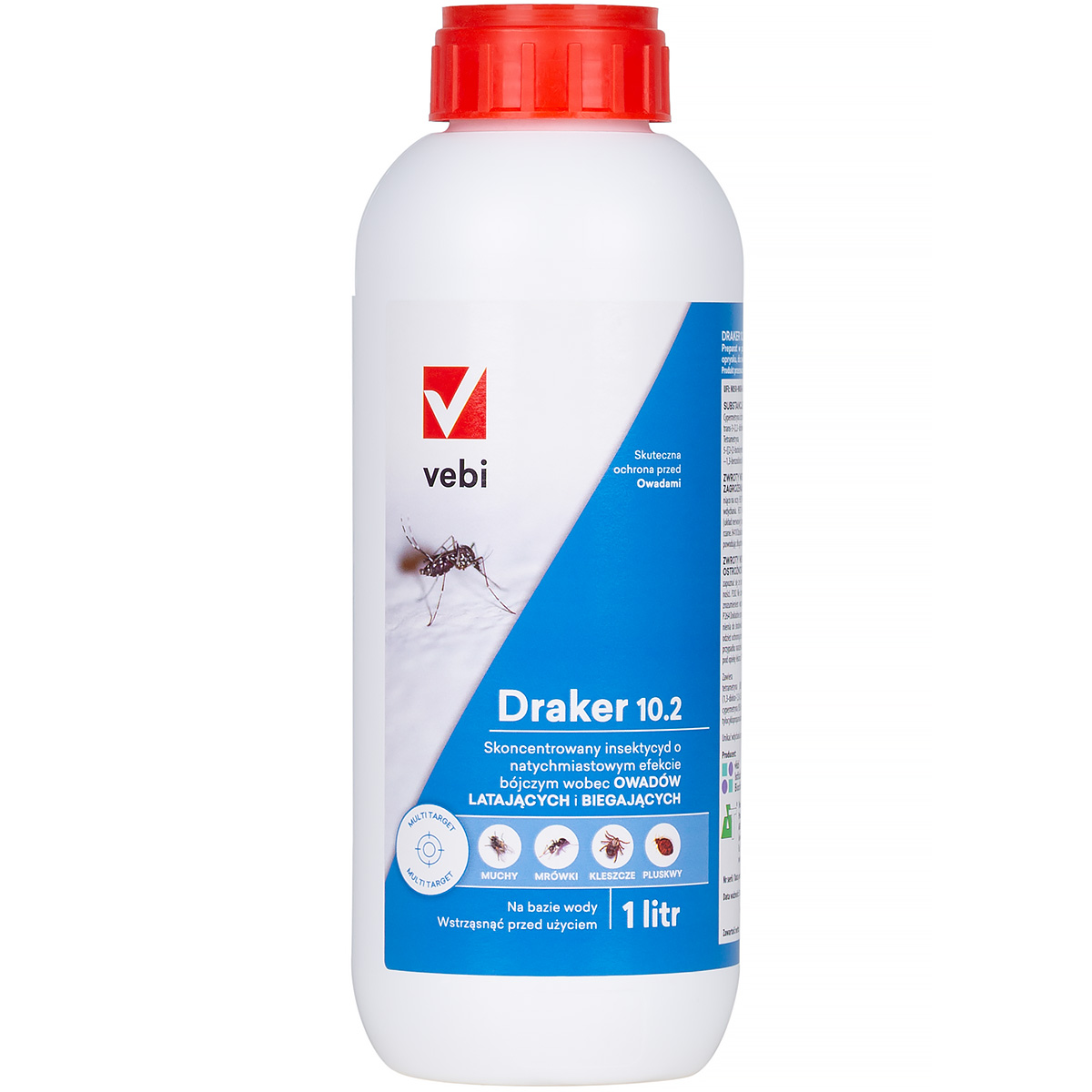 Draker 10.2 Preparat na owady, to bardzo skuteczny biobójczy środek służący do zwalczania owadów zarówno latających, jak i różnego rodzaju karaczanów. Draker 10.2 1 l skutecznie zwalcza obecne już w naszym życiu owady oraz zapobiega pojawianiu się w nim nowych szkodników. Dużym atutem środka jest jego brak zapachu, co sprawia, że jego działanie poza samym oczekiwanym efektem jest niezauważalne.