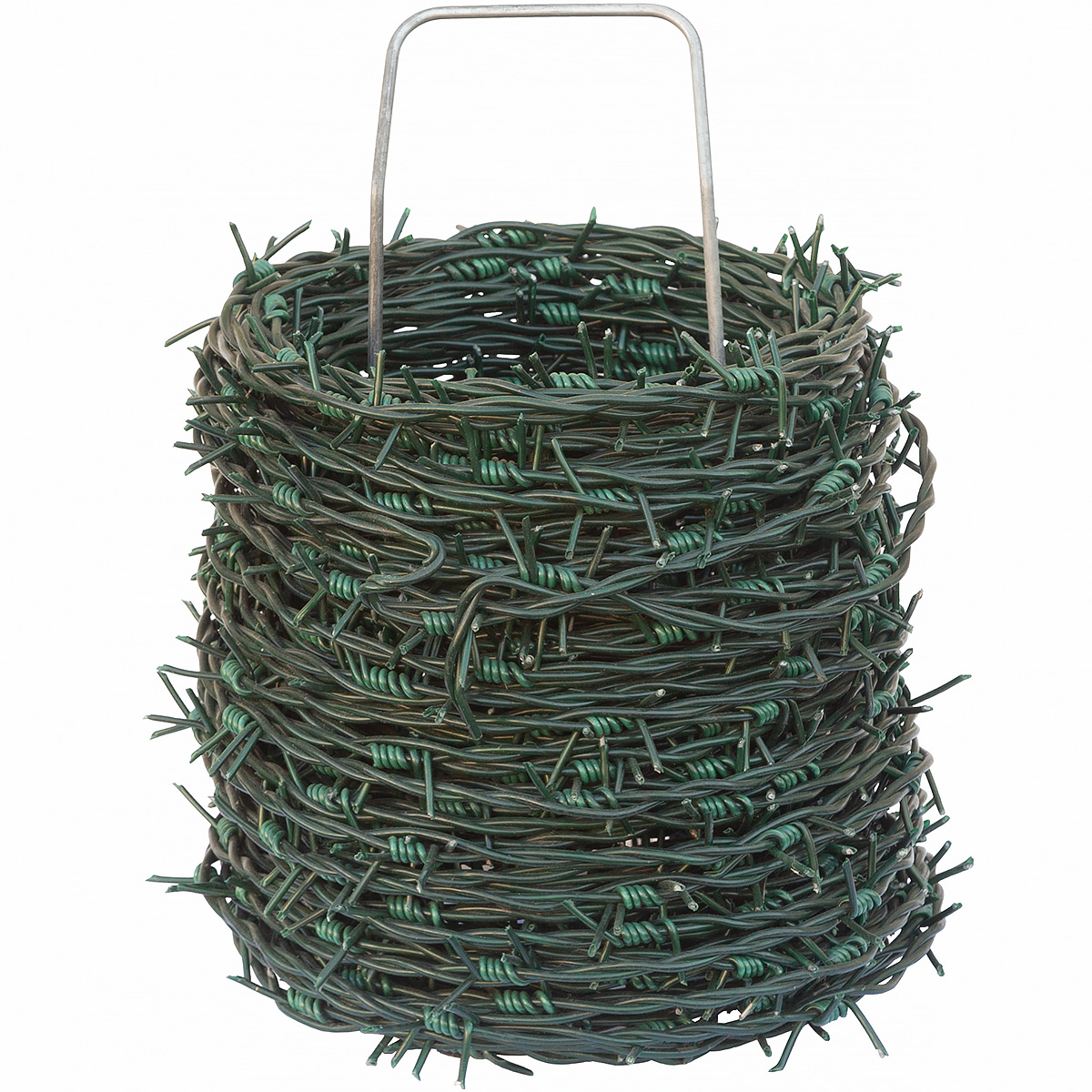 Drut kolczasty PCV zielony zapakowany jest w rolce o długości 50 mb. Wyposażony jest ponadto w praktyczny uchwyt ułatwiający przenoszenie rolki z drutem. Drut jest ocynkowany i dodatkowo pokryty powłoką PCV w kolorze zielonym.