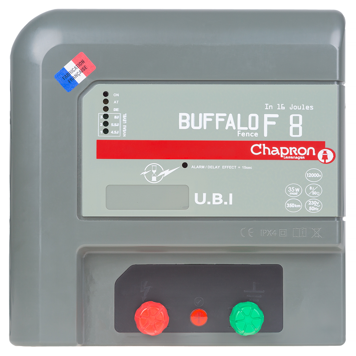 Pastuch Buffalo F8 to inteligentny elektryzator francuskiej produkcji Chapron przeznaczony dla bydła mięsnego oraz do ochrony upraw przed dziką zwierzyną leśną. Dzięki bardzie dużej energii impulsu dochodzącej do 16J jest to niezawodny pastuch, który powstrzyma dorosłe i ciężkie bydło jak Hereford, Charolaise czy Limousine. Jest również bardzo skutecznym rozwiązaniem do zabezpieczania upraw przed szkodami łowieckimi powodowanymi przez dziki, sarny lub jelenie.