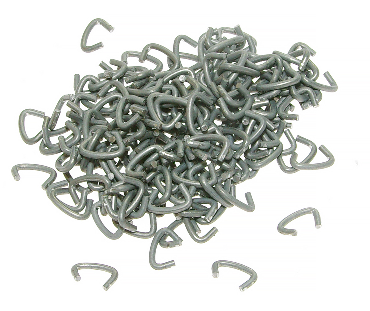 Wysokiej jakości spinki w kształcie litery J do łączenia siatek zgrzewanych. Rozpiętość spinki J bez zaciskania wynosi 13,5 mm.Specjalny kształt zacisku do krat zgrzewanych sprawia, że łączenie jest bardzo łatwe, nawet w przypadku siatek o bardzo drobnym oczku. Klips do krat zgrzewanych wykonany został z druciku o średnicy 2 mm. Taka grubość spinki pozwala na mocne i solidne łączenie siatek.Klips J do łączenia siatek zgrzewanych w całości wyprodukowano z wysokiej jakości materiału - tzw. aluocynku, czyli metalu ocynkowanego z domieszką aluminium. Taka konstrukcja sprawia, że spinka jest wytrzymała i wysoce odporna na uszkodzenia mechaniczne, a przez to nadaje się do budowy różnych struktur z siatki zgrzewanej. Klipsy mocuje się za pomocą zaciskarki do siatek zgrzewanych, która przeznaczona jest do tego rodzaju spinek - głowica kleszczy dostosowana jest do kształtu litery J zacisku (zdjęcie numer 3).Spinki do zaciskania krat zgrzewanych sprzedawane są w opakowaniu zbiorczym liczącym 50 klipsów.
