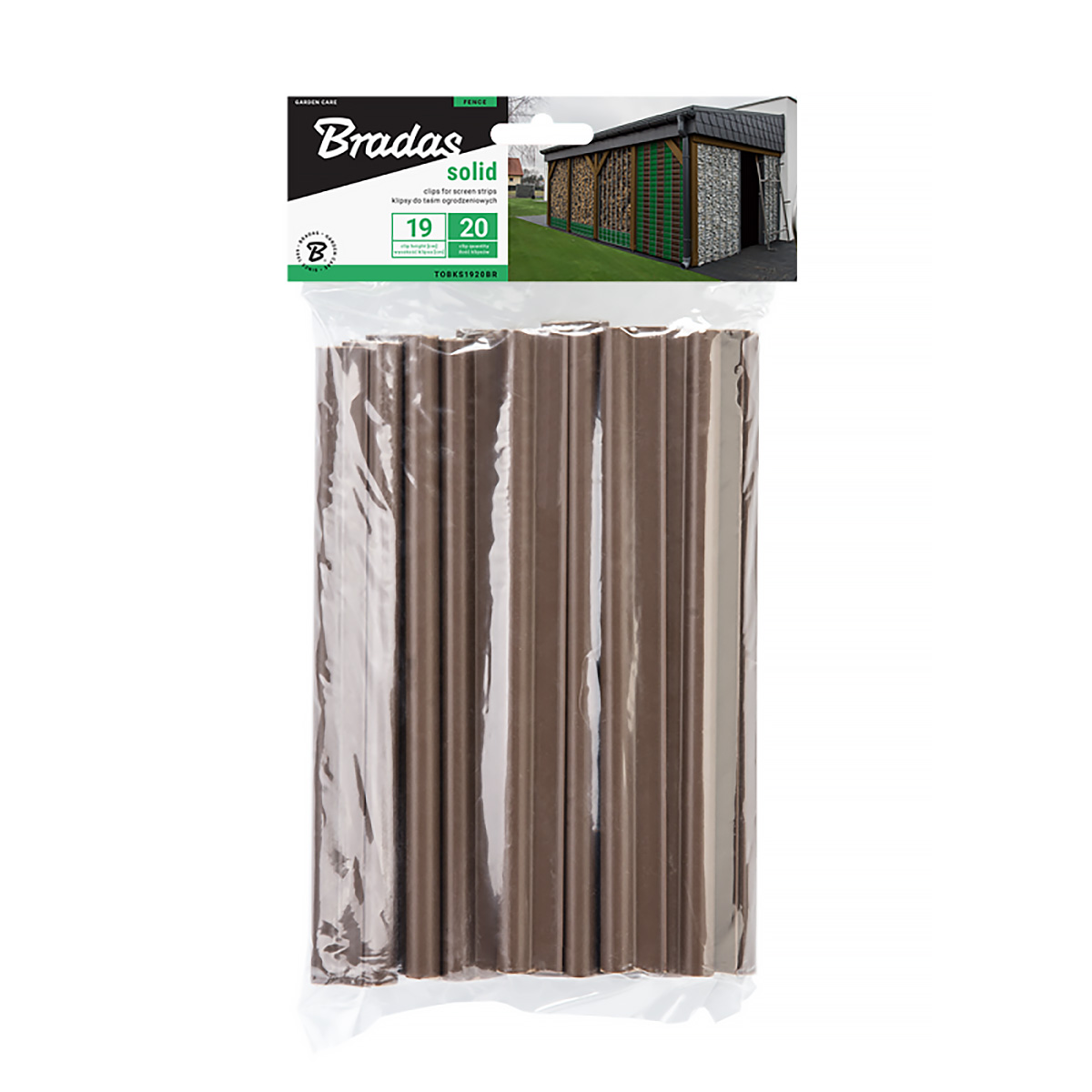 Klipsy do łączenia taśmy na panelach zostały wykonane z wysokiej jakości tworzywa sztucznego odpornego na UV. Opakowanie zawiera 20 sztuk klipsów o wysokości 19 cm, koloru RAL 8011.
