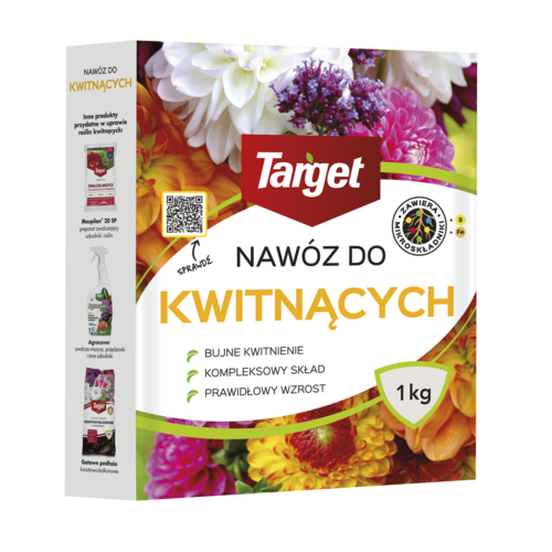 Nawóz do roślin kwitnących TARGET 1 kg zapewnia roślinom bujne i piękne kwitnienie. Nawóz do kwiatów z mikroskładnikami, zawiera wszystkie niezbędne składniki pokarmowe dla roślin kwitnących, takie jak azot, fosfor, potas, magnez i mikroelementy.