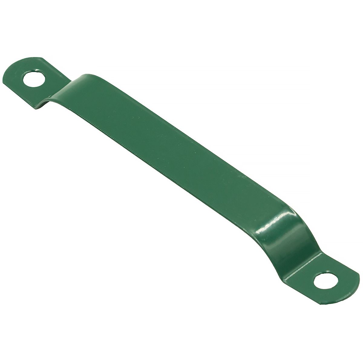 Obejma na słupek ogrodzeniowy 60 mm do mocowania napinacza do drutu naciągowego. Obejma wykonana ze stali ocynkowanej posiada powłokę PCV w kolorze zielonym.