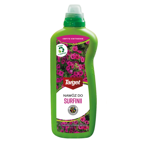 Nawóz w płynie do surfini OBFITE KWITNIENIE 1L Target ma formę koncentratu rozpuszczalnego w wodzie. Płynne nawozy są dobrze przyswajane przez system korzeniowy rośliny i lepiej się wchłaniają. Co ważne, nawóz zamknięto w wygodnej butelce z dozownikiem, umożliwiającym odmierzenie niezbędnej ilości płynu do nawożenia surfini.