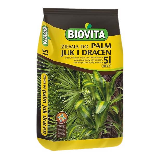 Ziemia do palm Biovita 5 l to podłoże dedykowane do sadzenia i przesadzania roślin domowych tj. juki, draceny, fikusy oraz inne rośliny zielone. Prezentowane podłoże do juk posiada odpowiednio dobrany skład, tak aby stworzyć roślinom optymalne warunki wzrostu i rozwoju.
