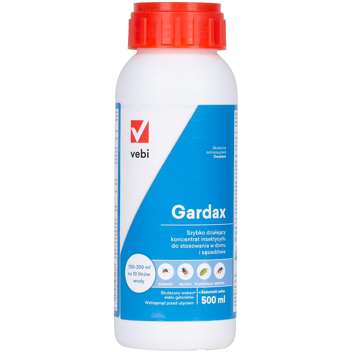 Preparat na komary, meszki, muchy i inne owady GARDAX 500 ml, to wysoce skuteczny środek owadobójczy, który zawiera silną substancję czynną jaką jest cypermetryna. Działanie cypermetryny cechuje się początkowym paraliżem potraktowanego owada, który w niedługim czasie później umiera i nie jest już więcej uciążliwy.