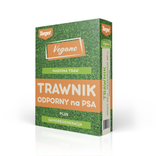 Trawnik odporny na psa Vegano TARGET 1 kg nasiona to innowacyjna mieszanka trwa, którą wzbogacono mikrokoniczyną wykazującą się dużą tolerancją na mocz psa. Trawa Vegano TARGET jest odporna na zawarty w moczu psa azot mocznikowy do dawki 160-200 kg/ha, czy na około jedno sikanie pupila.
