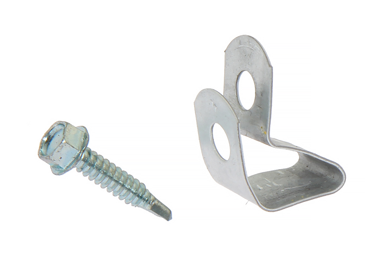 Oczko do łapania siatki wykonane jest z blachy stalowej ocynkowanej w celu dokładnego zabezpieczenia przed korozją. Uchwyt montażowy do siatek mocowany jest do słupa na wkręt samowiercący, który jest dołączony do zestawu z każdą blaszką do łapania pręta naciągowego.